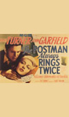 TRAMA: Frank, un giovanotto che lavora ora qua ora là e non riesce a rimanere mai in nessun luogo, arriva in un piccolo ristorante sulla strada di Los Angeles. Viene assunto come garzone e s'innamora della moglie del padrone, Cora. Fra i due si accende una violenta passione sensuale. Cora, con l'aiuto dell'amante, attenta per due volte alla vita del marito. Il secondo tentativo riesce: vengono arrestati entrambi, ma riescono a cavarsela. Padroni ormai del ristorante, che va a gonfie vele, si sposano. Tutto sembra sistemato per il meglio: i due si sentono pienamente felici, quando Cora perisce in un incidente automobilistico. Frank, sospettato ingiustamente d'uxoricidio, viene arrestato, processato e condannato. Per indurlo a sopportare con rassegnazione una condanna che egli a ragione chiama ingiusta, il Procuratore Generale gli fa presente che, se anche riuscisse a provare la sua innocenza, verrebbe ugualmente condannato per la complicità nell'assassinio del primo marito di Cora. Il postino suona sempre due volte.
